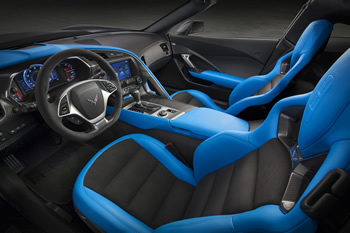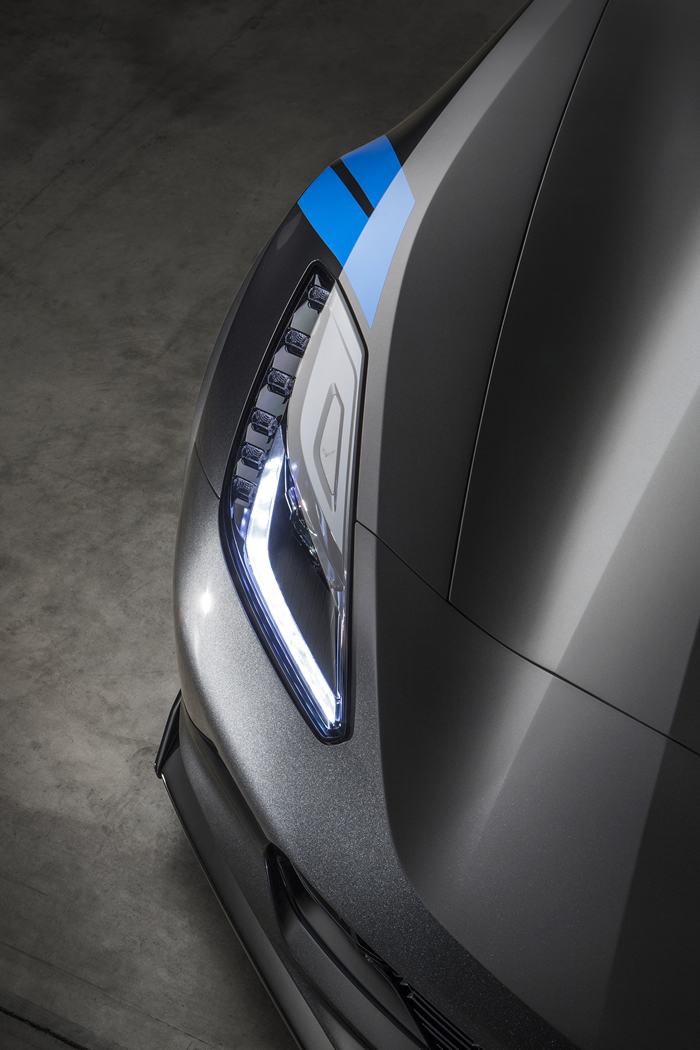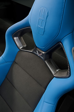 The Tension Blue color is a bold, modern take on the hue historically associated with the Grand Sport. Inside, a three-dimensional representation of an original Grand Sport race car is embossed in the headrests and that shape is also used on an instrument panel plaque that carries a unique build sequence number.