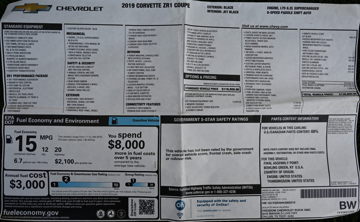 2019 CORVETTE ZR1 COUPE GENERAL MOTORS LLC