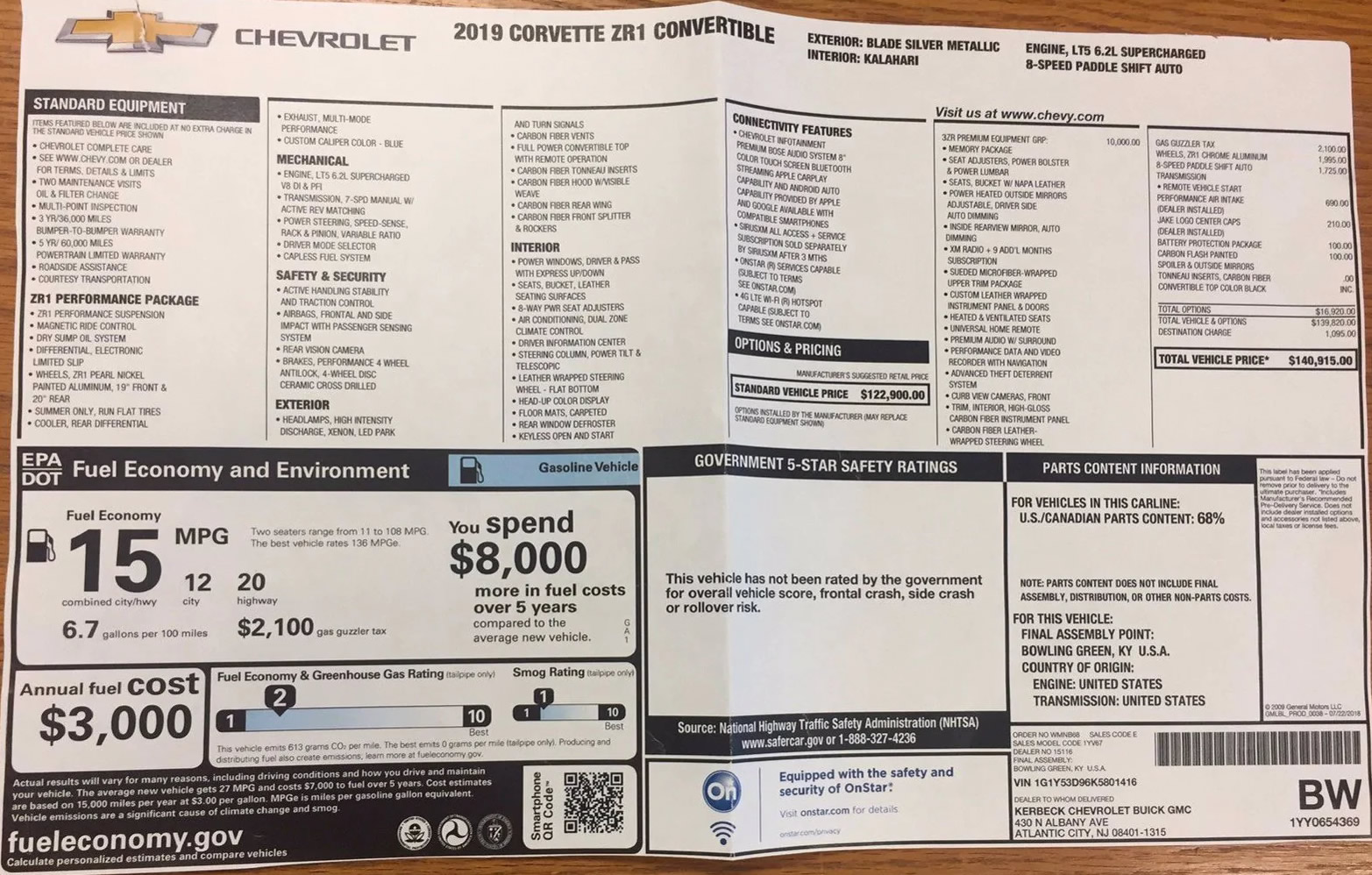 | Q9K - WHEELS, ZR1 CHROME ALUMINUM | R6M - NEW JERSEY COST SURCHARGE |