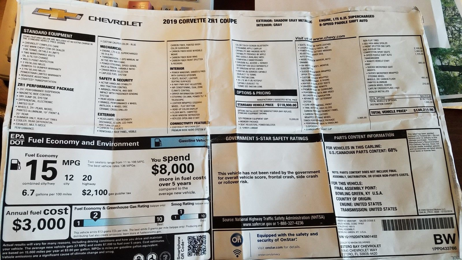 Below, are the production details and historical owner information for 2019 Corvette ZR1 Coupe, Serial #1452: