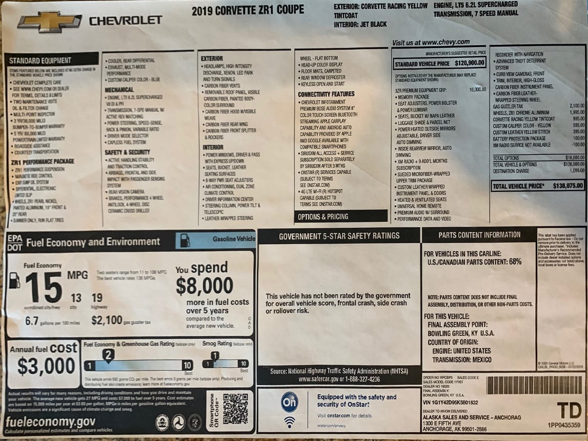 Below, are the production details and historical owner information for 2019 Corvette ZR1 Coupe, Serial #1632: