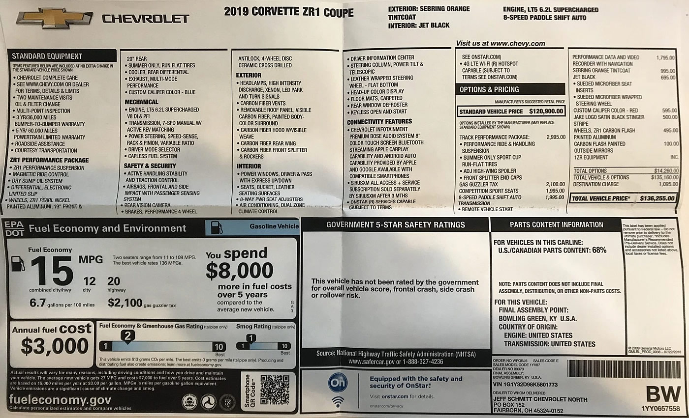Below, are the production details and historical owner information for 2019 Corvette ZR1 Coupe, Serial #1773: