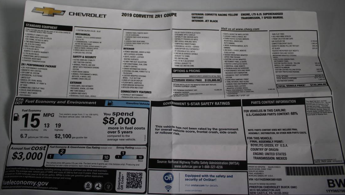 2019 CORVETTE ZR1 COUPE GENERAL MOTORS LLC