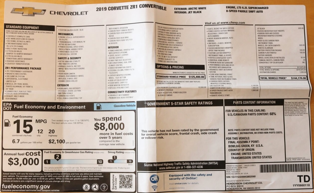 Below, are the production details and historical owner information for 2019 Corvette ZR1 Convertible, Serial #2060: