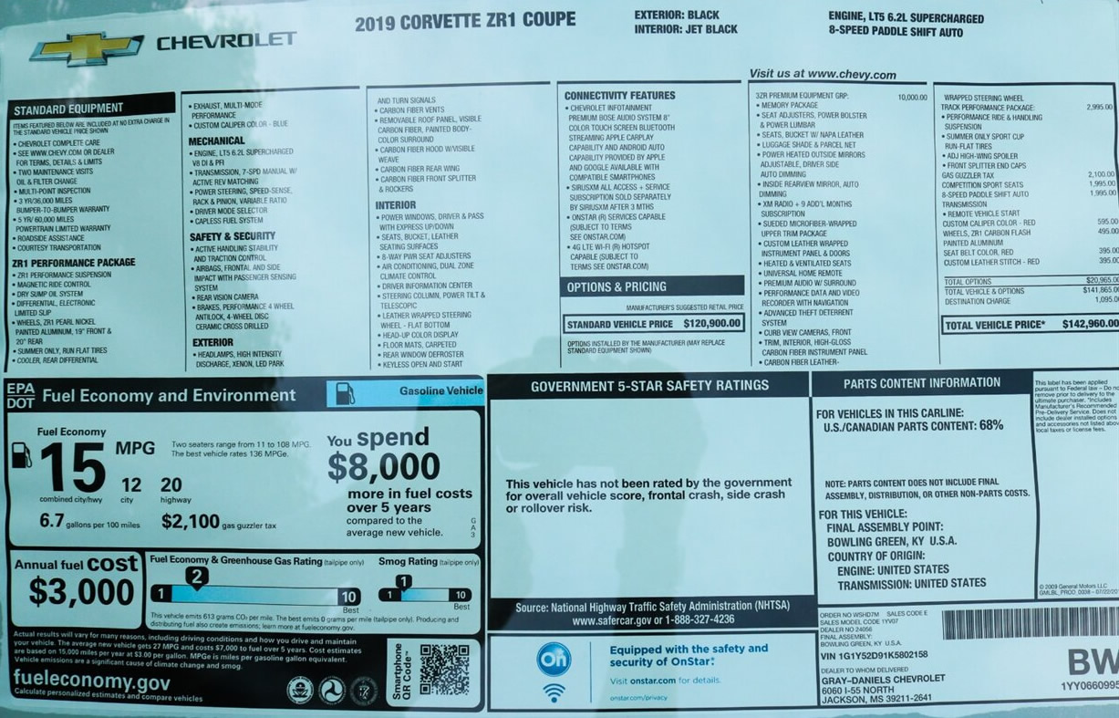 2019 CORVETTE ZR1 COUPE GENERAL MOTORS LLC