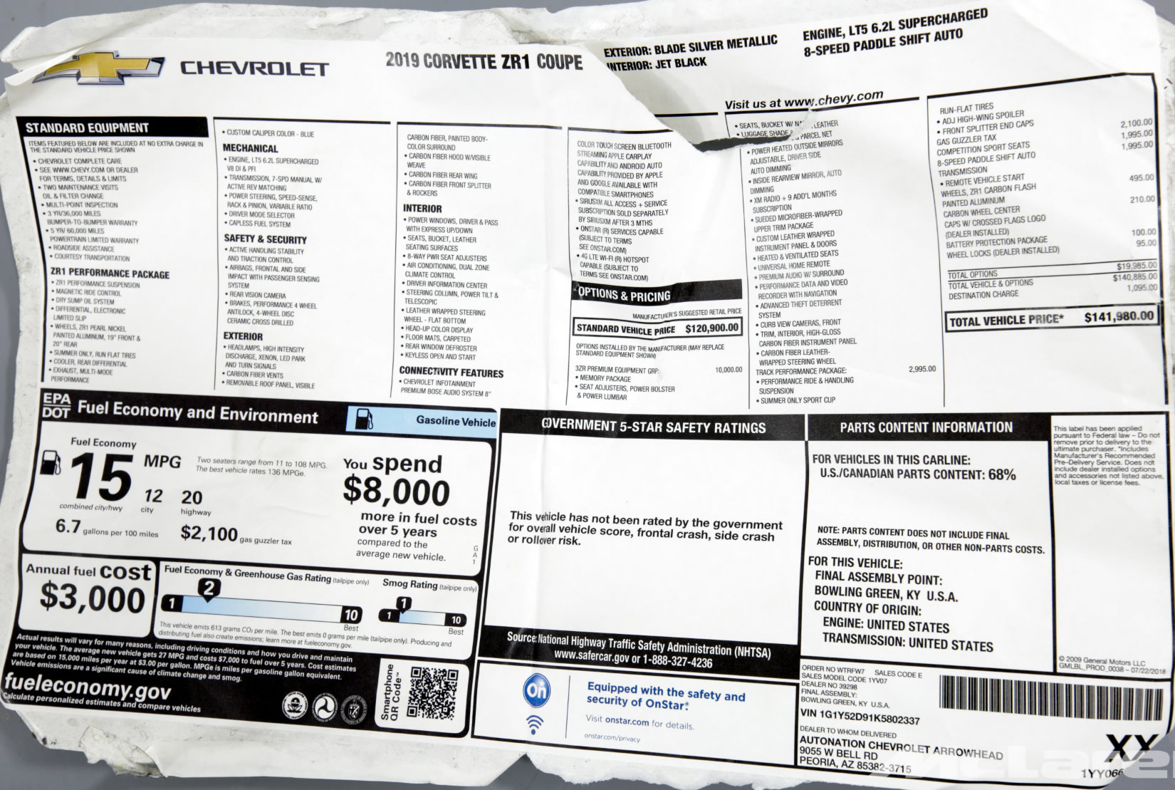 | Q9H - WHEELS, ZR1 CARBON FLASH PAINTED ALUMINUM | R8E - GAS GUZZLER TAX |