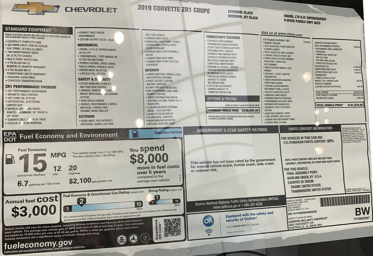 2019 CORVETTE ZR1 COUPE GENERAL MOTORS LLC
