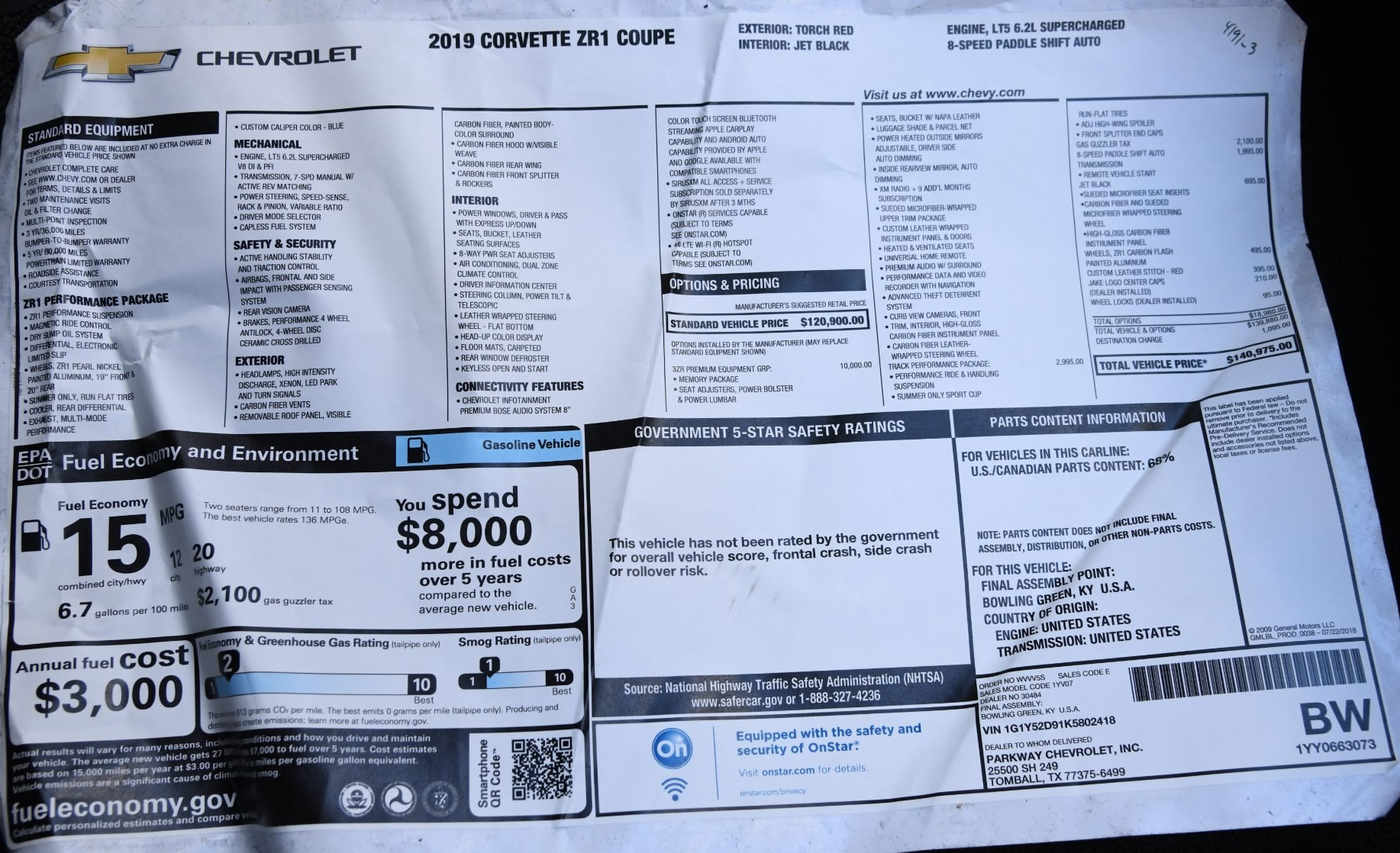 | Delivering Dealer / Invoicing Agent: PARKWAY CHEVROLET, INC. 25500 TX-249, Tomball, TX 77375 |