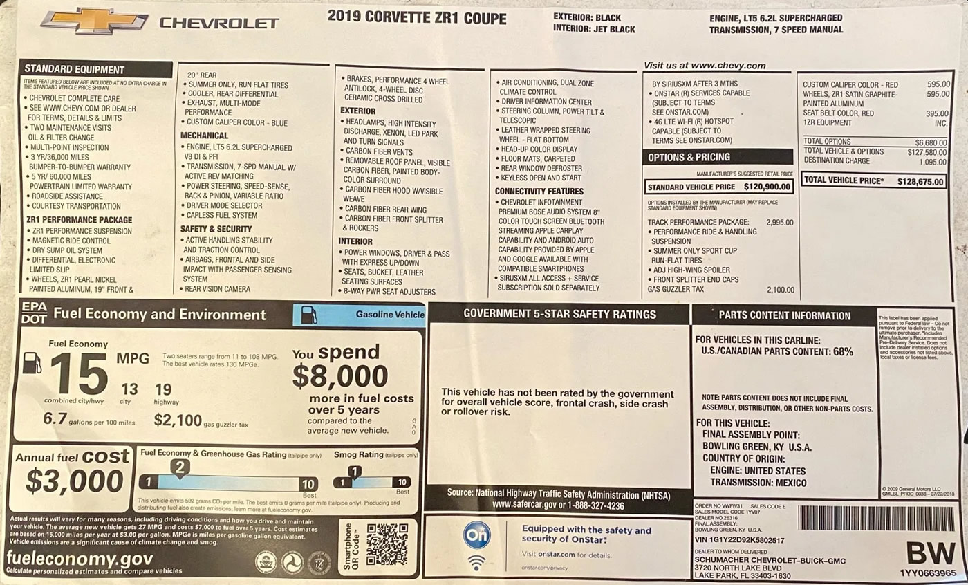 Below, are the production details and historical owner information for 2019 Corvette ZR1 Coupe, Serial #2517:
