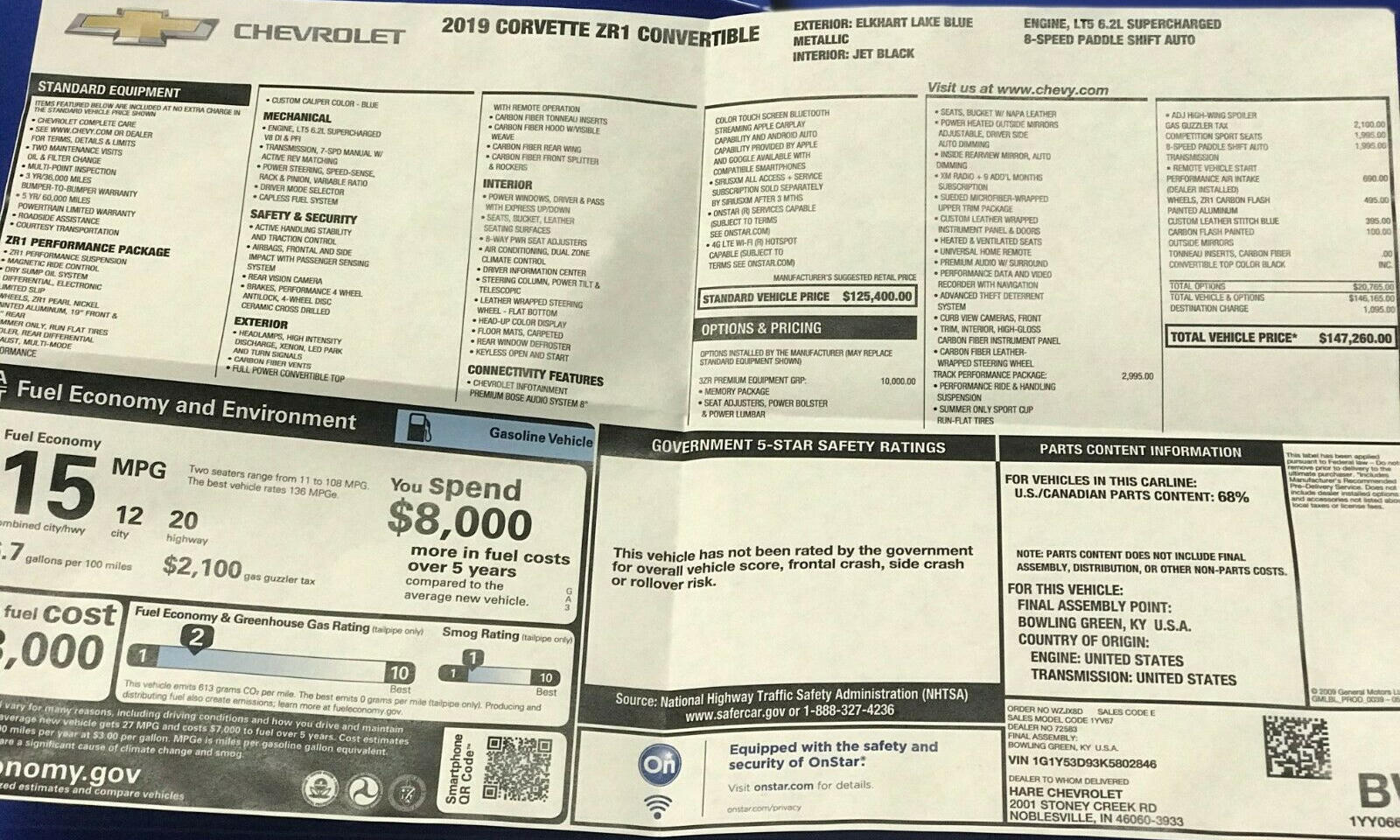 2019 CORVETTE ZR1 CONVERTIBLE GENERAL MOTORS LLC