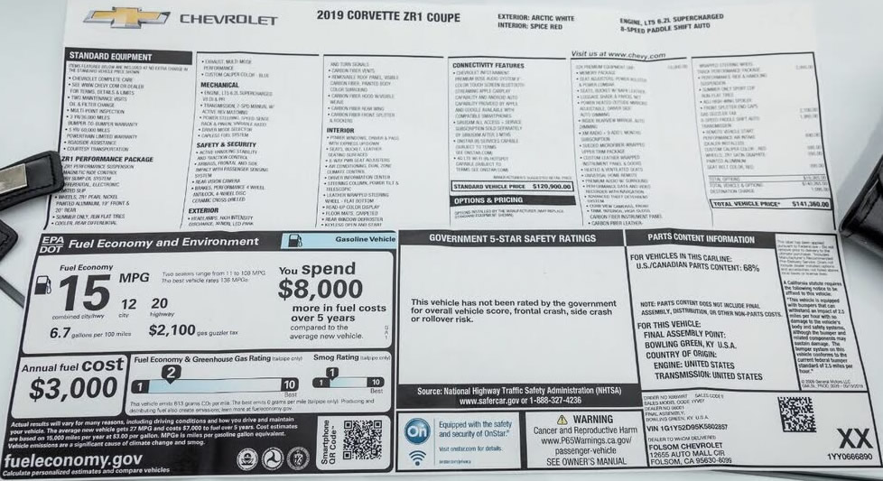 1YV07 CORVETTE ZR1 COUPE 120900.00 112920.60 INVOICE 07/31/19