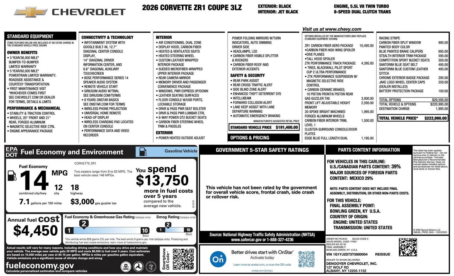 | Delivering Dealer / Invoicing Agent: DENOOYER CHEVROLET, INC. 127 WOLF RD ALBANY NY 12205-1152 5184587700 |