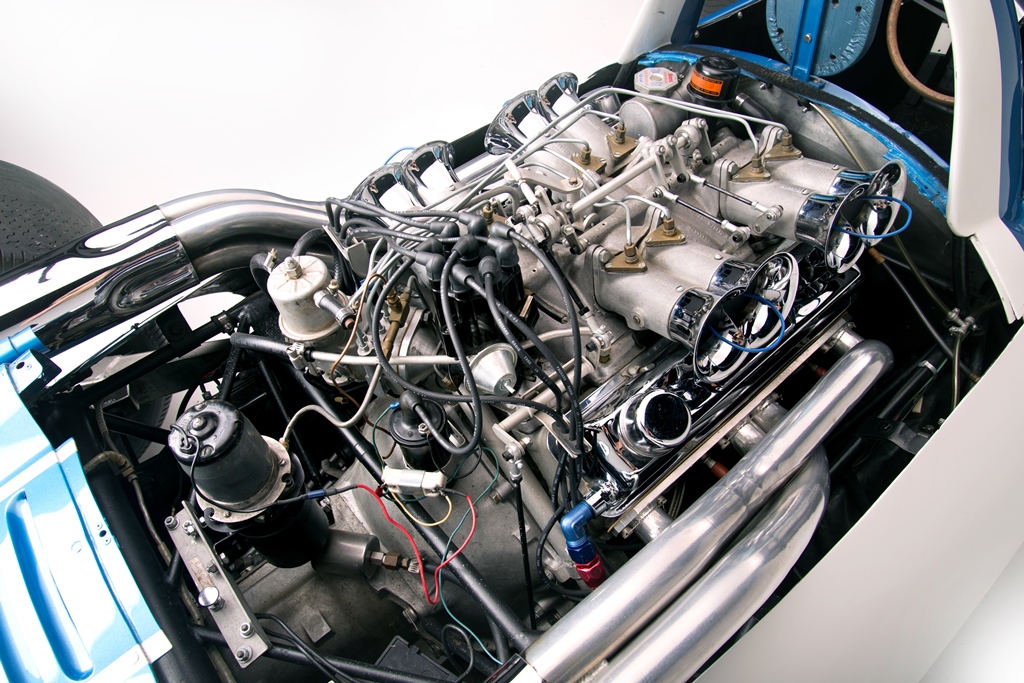 Power was originally supplied by a fuel-injected 350-horsepower 283. Magnesium and aluminum alloy engine pieces whittled down the weight of this power plant to a svelte 350 pounds. The car's Rochester injection system fed the juice from two rubber bladder fuel cells.
