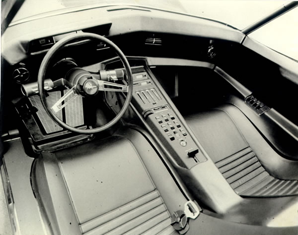 The interior of the Mako Shark I got a lot of criticism, particularly the steering wheel which was a small rectangular piece with controls for turn signals and transmission built-in. By the Paris show this was changed to a more conventional wheel with the main controls moved to stalks o the steering column. Does anything sound familiar here?