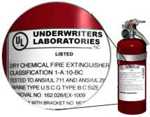 While all extinguishers are rated for the fire class for which they are effective, Class A and B units are, also, rated as to the size of fire they can extinguish and, for Class B extinguishers, for how long they can be discharged. The testing and rating of fire extinguishers is done by Underwriters Laboratories and the procedure is complicated. We should add that one should never use a fire extinguisher for vehicle or workshop protection which is not UL-rated.