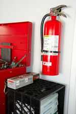 Another issue we can’t repeat too many times: if you decide to fight a fire with a portable extinguisher, make sure you have an escape route, approach to 6-10 feet then PASS...pull the pin, aim at the base of the flames, squeeze the handles and sweep side-to-side.