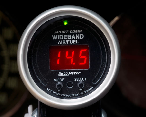 Accurate measurement of air-fuel ratio (AFR) is required. It's done with an oxygen sensor (O2S) screwed into the exhaust. Inexpensive "rich-lean" indicators, which use narrow-band sensors are inadequate. A modern, wide-band oxygen sensor is required. I installed the Auto Meter "SportComp Wideband Air-Fuel Ratio Monitor" (PN 3378) which I picked because: 1) The Big Block from Hell already had SportComp instrumentation and my experience with it has been good. 2) It uses a Bosch wide-band O2S with a resolution of 0.1 air-fuel ratio and 3) I like its combination of a numeric display (reads AFR or lambda) and a "pseudo-analog" display of colored LEDs. Fine tuning a Double-Pumper's drivability is very difficult without a wide-band O2S like the Auto Meter.