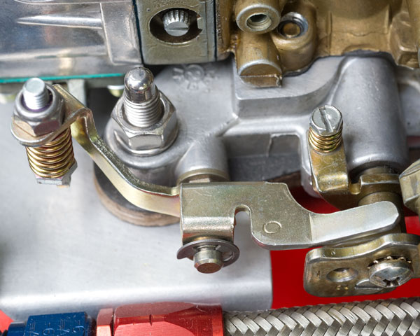 After the Carb Shop's O. J. Bretzing modified my metering blocks for removable power valve channel restrictions, I started with .071-in. primary and .059-in. secondary PVCR jets. At this point, I was road testing the engine at wide-open throttle to 6500 rpm in second and third gear and noted that the AFR a little lean—in the mid-13:1 area. I increased the PVCR area by about 10%. The final power valve channel restrictions were 073-in, primary, and .063-in. secondary. That resulted in an AFR of 12.5-13.0:1 up to 6000 rpm or so.