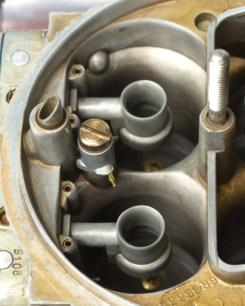 Start with the primaries. With the engine warmed and idling in the shop and keeping your face and upper body away from the top of the carb, hold the secondaries closed with your right hand and use your left to rapidly open the throttle. If the engine back fires through the primaries, jump the primary nozzle up three sizes. It hesitates a little but doesn't spit, jump the shooter up two sizes. On the other hand, if your snap the throttle open and the engine responds lazily, go down a couple of nozzle sizes. Now, do the same with the secondaries. If the engine spits as the secondaries open, jump the secondary accelerator pump nozzle up four numbers. If it just hesitates, try going up two numbers.