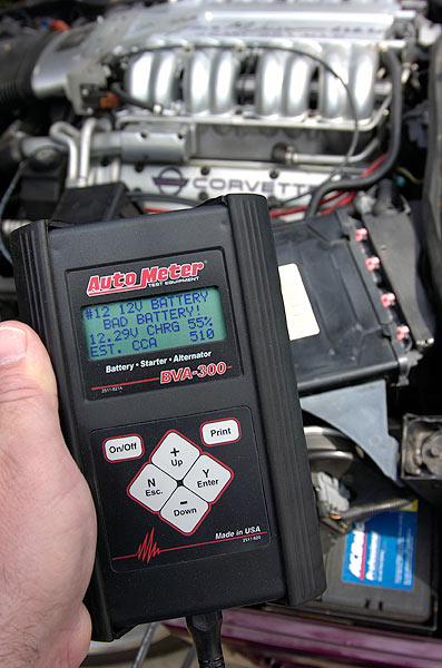 A BVA-300 can test virtually all batteries you'd find in a Corvette. Connect the device to your battery, key-in the battery's cold cranking amps (CCA) rating, press the test button and battery voltage and condition shows on its display. The unit's main attractions are: accuracy, ease-of-use and compact size.