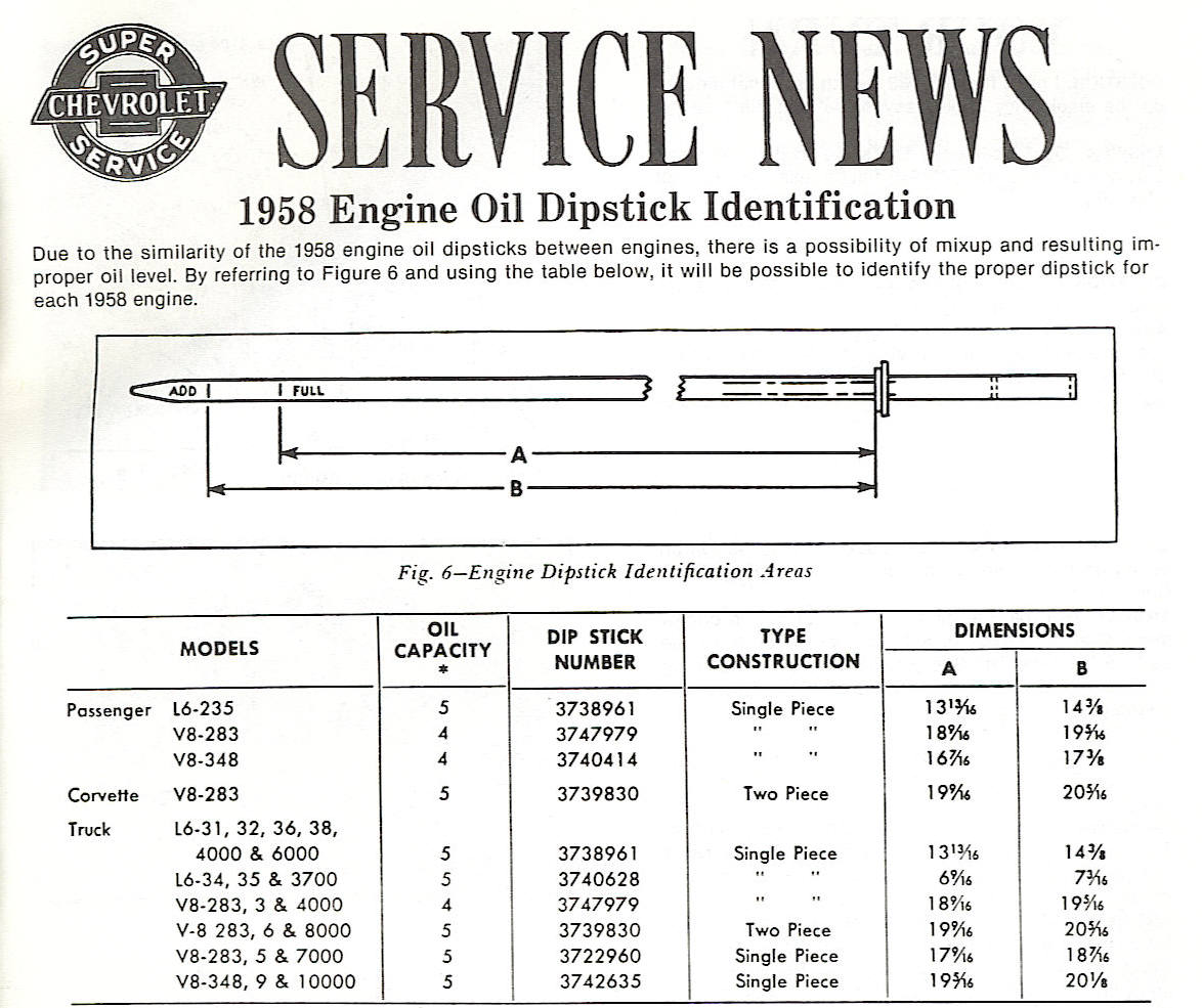 Estimated Reading Time: < 1 MinuteEngine oil dipstick identification for the 1958 Corvette. Document attached.