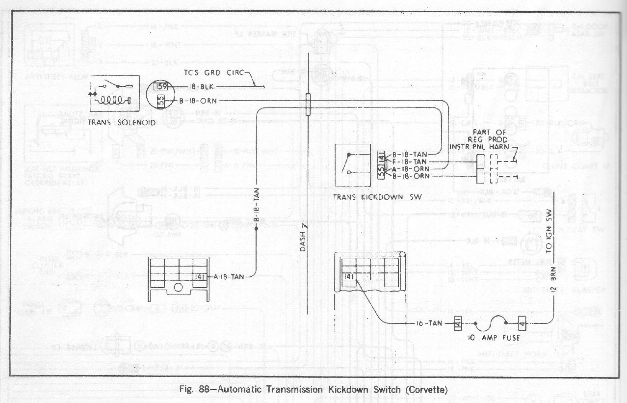 Estimated Reading Time: < 1 MinuteAttached below is the electrical schematic for the automatic transmission kickdown switch in the 1973 Corvette.