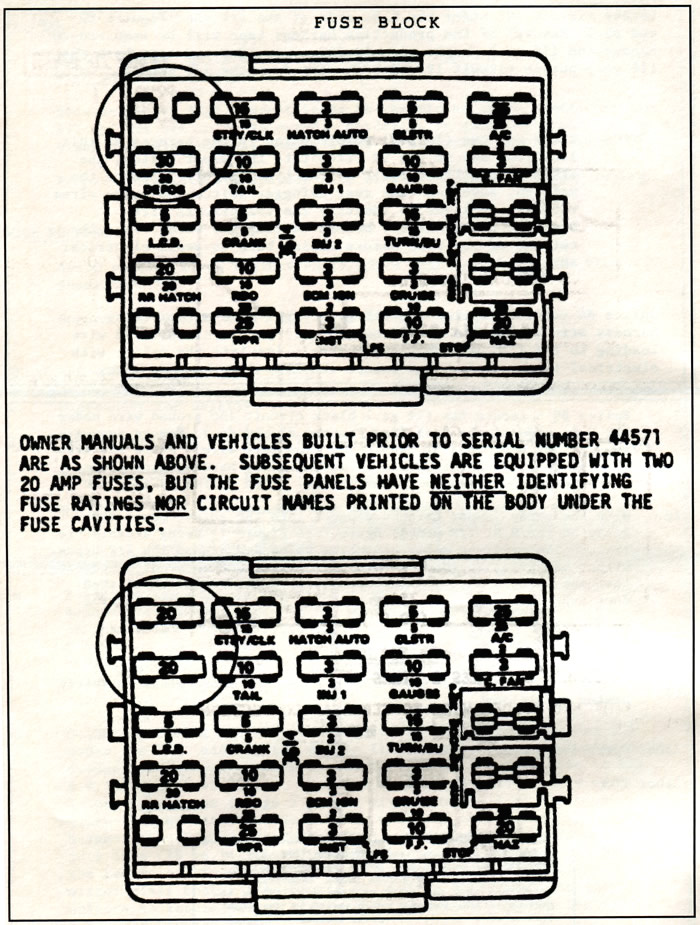 Some comments have been received regarding blown fuses in the 1984 Corvette rear hatch defogger circuit. This circuit also feeds the door mirror glass heaters. Under certain conditions, the current draw in the feed circuit may exceed 30 amps, resulting in a blown fuse.