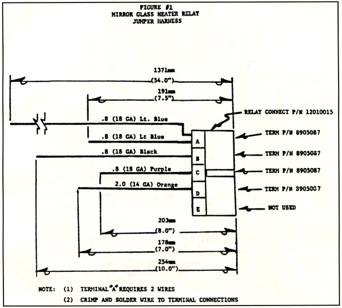 - Because of the high current loads in the mirror glass heater circuit, all splices are to be soldered. Soldering is also required when assembling the relay harness jumper wires to the relay terminal connectors.