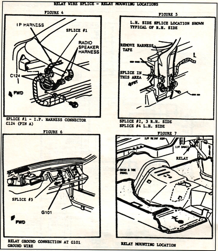 - Splice #5 - locate the (12 ga.) black circuit 150 ground wire under the R.H. side of the dash (See Figures #2 and #6.) Remove approximately 15mm (.62 in.) of insulation from this wire. Strip and wrap the (18 ga.) black (Relay Pin B) mirror relay harness wire around the circuit 150 ground wire and solder. Tape splice to insulate.