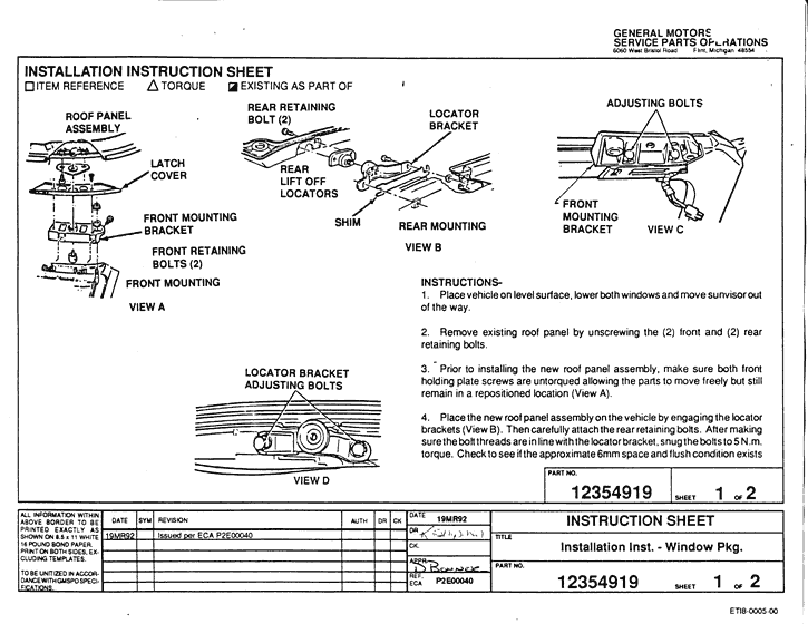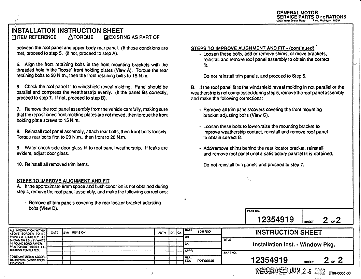 1986 - 1988 Corvette: Service Bulletin: Roof Panel Adjustment Procedures