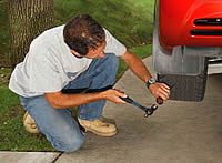 I wanted to test a C5 with a flat run-flat to see what EMTs were like when driven after a typical puncture. Some Corvette pals of mine, Mike and Crescent LoMonoco, own a 2001 Targa and were willing to help me with this test. Mike brought his ’01 over to the shop where I had him drive an awl though the tread of his left rear EMT. Pulling it out left a 1/8-in. hole.