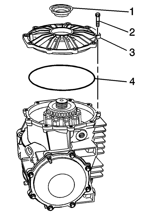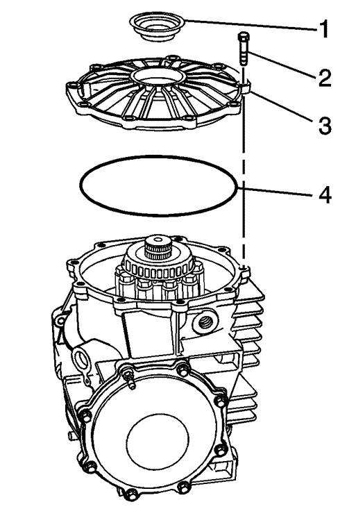 - Remove and discard the axle seal (1), and O-ring seal (4) from the differential cover (right).