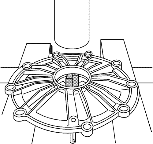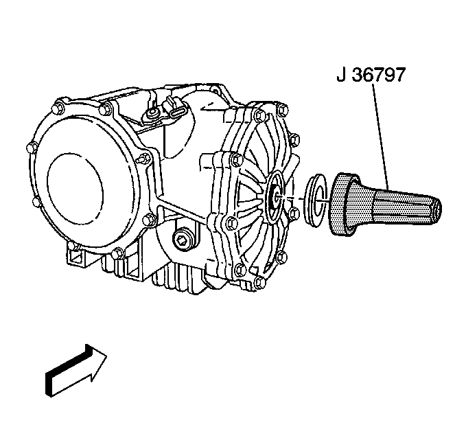 - Install the J 42194 into the differential cover (right), in order to remove the bearing race and shims. Position the cover into a hydraulic press.