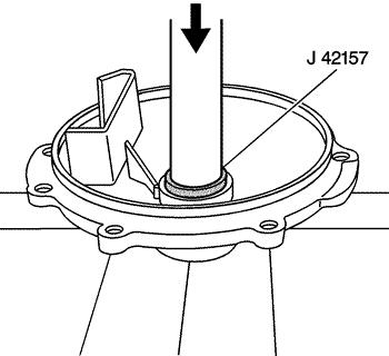- Install the bearing into the cover - left using the J 42157 and a hydraulic press.
