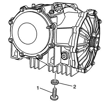 - Install the drain plug (1) and washer (2). Tighten Tighten the drain plug to 35 N·m (26 lb ft).