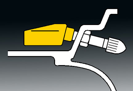 - Position the mounting/dismounting head so the tire iron or pry bar can be inserted slightly clockwise of the sensor body when prying the tire bead up and over the mounting/dismounting head.