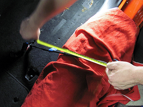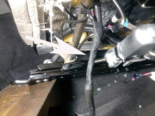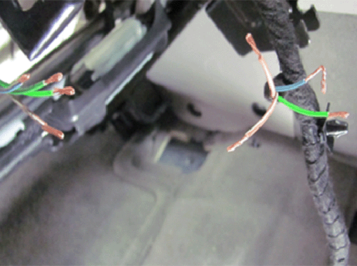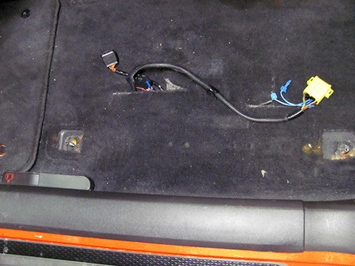 - On the vehicle harness, pull the harness from under the carpet, to the front location as shown.