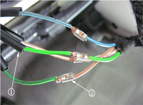 - Add one approximate 38 mm (1.5 in) section of heat shrink tube to each of the four wires (1).
