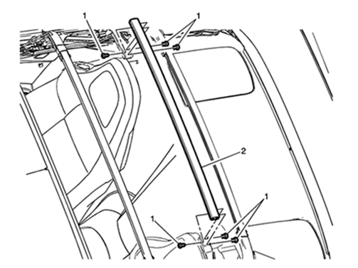 ![]() The cause of the condition may be that the fasteners (1) at the ends of the #3 Bow (2) may have lost torque. |