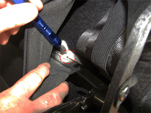 - Starting on either side, replace the current M5 retaining screws with the new M6 self threading screws.