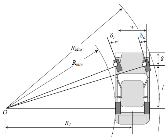 Ackermann steering geometry is shown in the diagram below. On a car with perfect Ackermann, the inside tire angle (Si) and outside tire angle (So) follow the same arc. On a Corvette Stingray, at large steering angles, they do not follow the same arc.