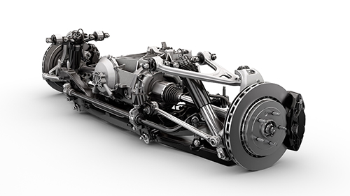 The front and rear suspension feature a short/long arm (SLA) double wishbone design with cast aluminum upper and lower control arms, transverse-mounted composite springs and monotube shock absorbers. (Fig. 5)