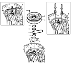 - Remove the front cover (2) and seal (3). Inspect the seal and replace if worn or damaged.