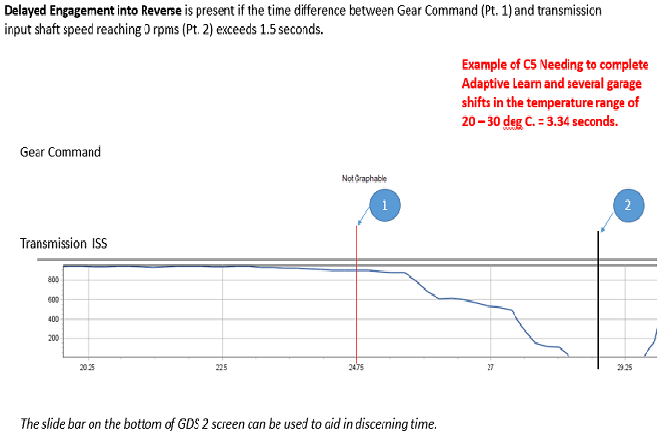 If the learn procedure does not correct the condition contact GM TAC for review and additional instructions. Prior to contacting TAC record a GDS2 Session log of the delayed engagement.
