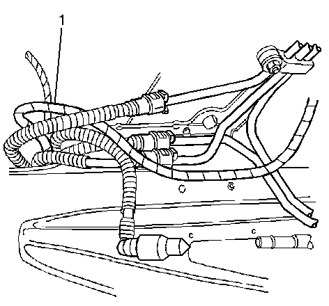 INSPECT THE AREA ABOVE FOR PINCHED WIRES. IF THE WIRES DO NOT MOVE FREELY, THEY MAY BE PINCHED. THE HARNESS IS #1 IN FIGURE 1.