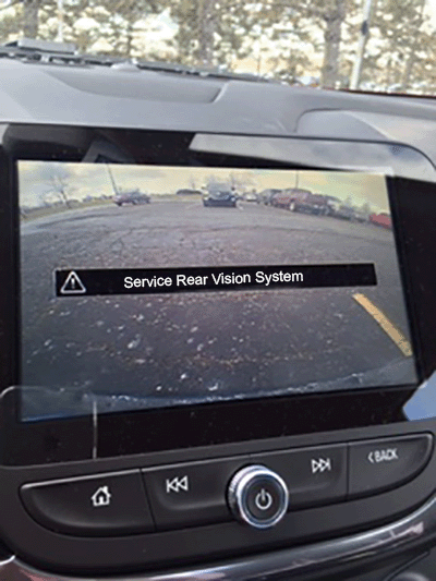 Some customers may complain of an intermittent loss of gridlines in the rear camera display screen and a "Service Rear Vision System" message that both happen at the same time. At this time, the normal rear vision camera image will still be displayed as shown in the photo below. In some cases, the concern will correct itself before shifting back to drive and it is unlikely for the concern to occur over multiple ignition cycles. No DTCs will be stored if this PI applies |