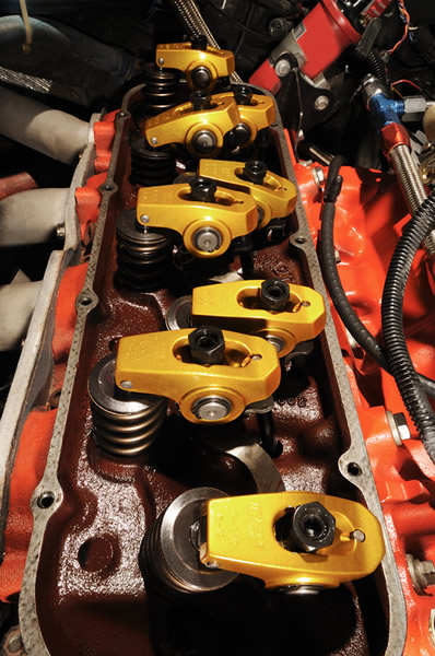 One factor affecting the camshaft wear problem has been the widespread acceptance by Corvette performance enthusiasts of rocker arms with higher than stock ratios. An example are these Crane, 1.8:1, roller rockers on a Big-Block in a hot rod, '71 Coupe. Higher ratio rockers increase loads at the lobe/lifter interface. The increased loads require engine oil with high phosphorous content or the cam and lifters will fail.